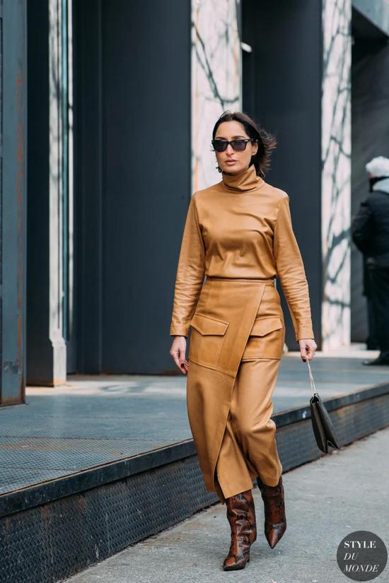 同色系更高级的搭配秘诀应该不用再强调了吧~省时省力,穿上相同颜色的上衣和下装,但总觉得缺了点什么,那么动物纹的皮靴就派上用场了,色调呼应,还增加了花纹,给全身添了不少亮点和细节呢~
