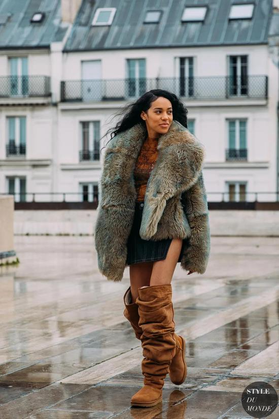 雪地靴一定是最最最保暖的!而普通的款式既笨重,又不好看,感觉似乎没什么搭配能挽救一双普通的雪地靴。那么这样夸张的超高筒雪地靴不妨试试~从前几年就开始流行起了长度过膝,还有点堆堆的靴子,当然雪地靴也可以啦。更何况穿上已经足够温暖的鞋子,就算是冬天也可以尽情露腿,上面披一件大衣出门,美有了,温暖也有了!