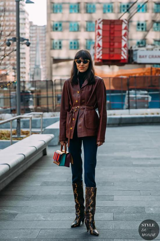 直男迷思:为什么女孩们怕蛇却这么喜欢蛇皮纹…害,还不是因为好看!更多变的花纹,还带点野性和性感,搭配一条牛仔裤,也很飒~本就有点酷酷的皮靴,加了一点小猫跟,如果全身还有其他皮质单品呼应,更是锦上添花。