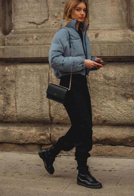 ▲正所谓“女人有没有气势,看她鞋子就知道”。穿羽绒服的时候不仅要维持好比例、凹出显瘦感,脚下的鞋子同样不能马虎。羽绒服搭配任何鞋子都合适,不过要让气势加倍的话,套上一双帅气的靴子准没错。不同于球鞋的休闲、高跟鞋的优雅,靴子可以塑造出个性街头风。