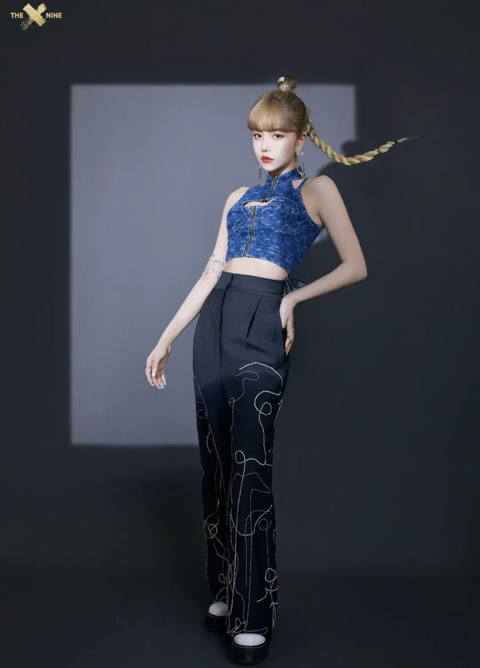 连人气组合THE9中的安崎,在演唱会中也选择了丹宁风的Croptop,大显风范。