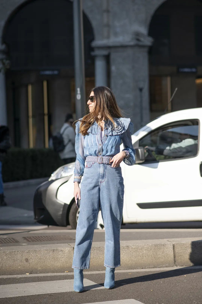 牛仔外套对于裤装的选择是非常的广,不管怎么搭都能让人眼前一亮。时尚博主 Laura Comolli选择用荷边叶阔脚裤搭配牛仔外套,也是一个我们值得学习的搭配方案。