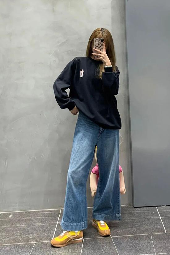 在她的展示中找寻灵感,我选了两件深色套头衫,简单搭配牛仔裤,随意又自然。