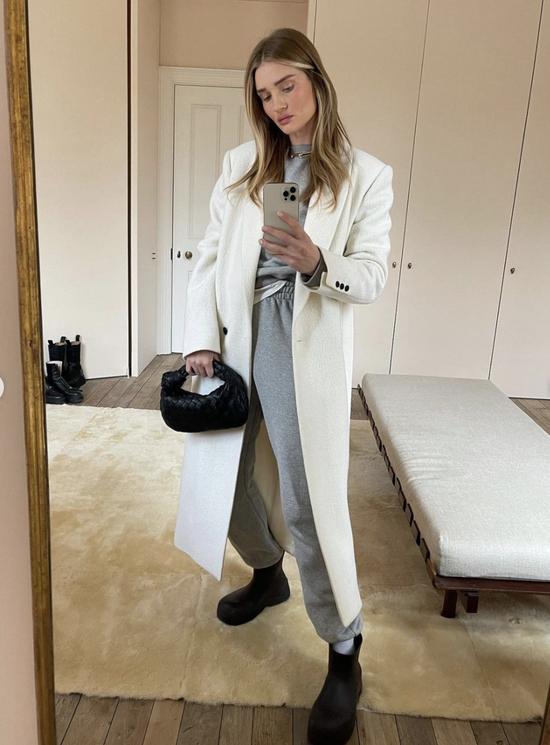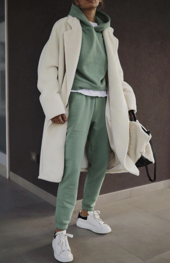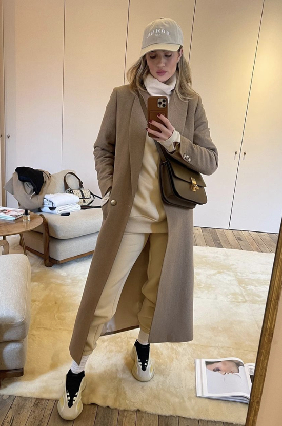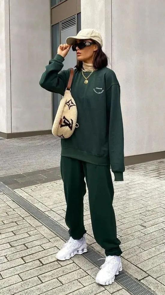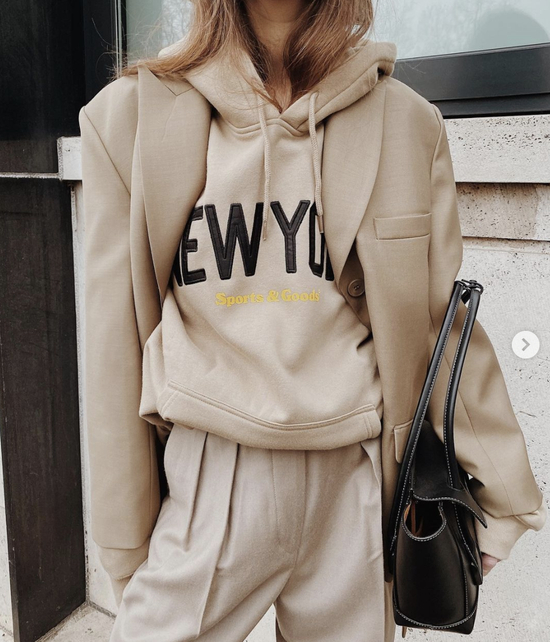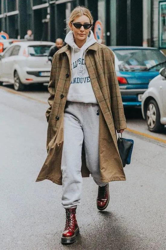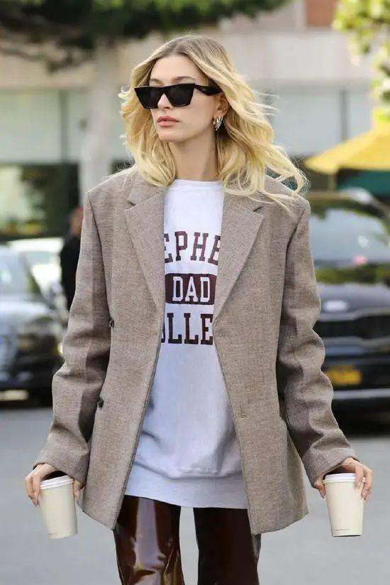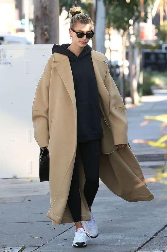 不知道卫衣怎么选的话,请尽情参考Hailey的私服look。作为Athflow风格·TOP级玩家,Hailey私下最喜欢的就是用运动套装来混搭各类大衣、西装啦,sporty风和chic风可以说被她玩转得游刃有余: