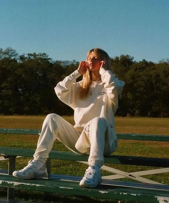 通过Hailey的look相信大家不难发现,Athflow风对运动套装的设计感,要求并不高。相反,越是简单的、素雅的运动套装,越是能展现Athflow风所传达的casual精神。