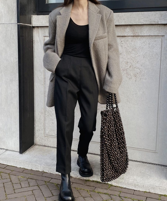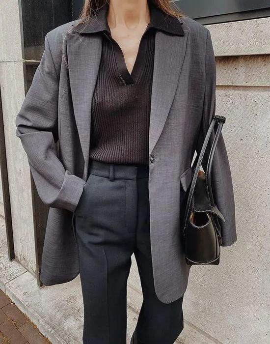 不过这其中有一点需要注意一下,那就是版型的挑选。Athflow风的外套,是希望你穿上之后稍显宽松,传达一种闲适的既视感,而不是让你在外套里跳舞!所以选择的西装或夹克不能太修身也不能太宽松,应该尽量在oversize与合身之间找到平衡,那才是最符合Athflow风的随性时髦。
