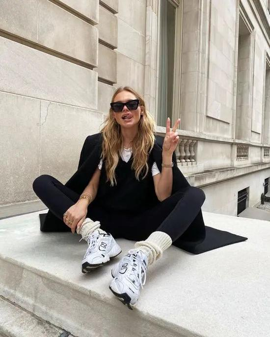 选择款式或配色比较出挑的运动鞋,会给偏素雅的Athflow look加分。让你看上去明明穿得那么简单,却又不缺时髦的亮点,鞋子成了隐隐发力的点睛之笔。