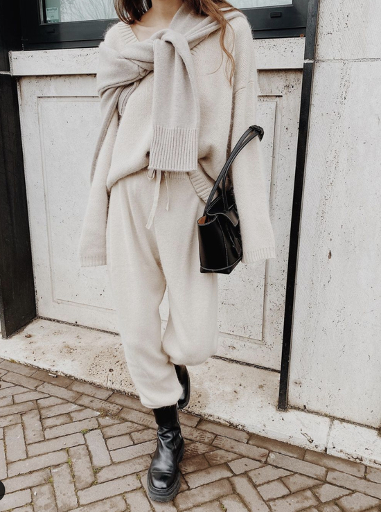 一件温柔软糯的针织衫,是比运动套装更容易打造出Athflow居家feel的单品噢。