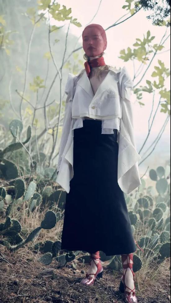Masion Margiela的2021春夏系列,将浪漫元素融入其中,荷叶边、薄纱,让这些西装外套充满了神秘色彩。