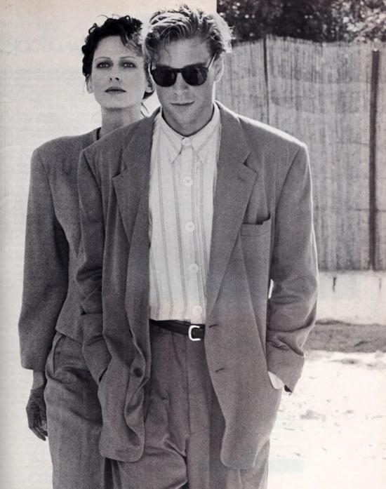 里面两位主角是最典型的“Armani Style”,基本与当时 Giorgio Armani 秀场上的模特无异。