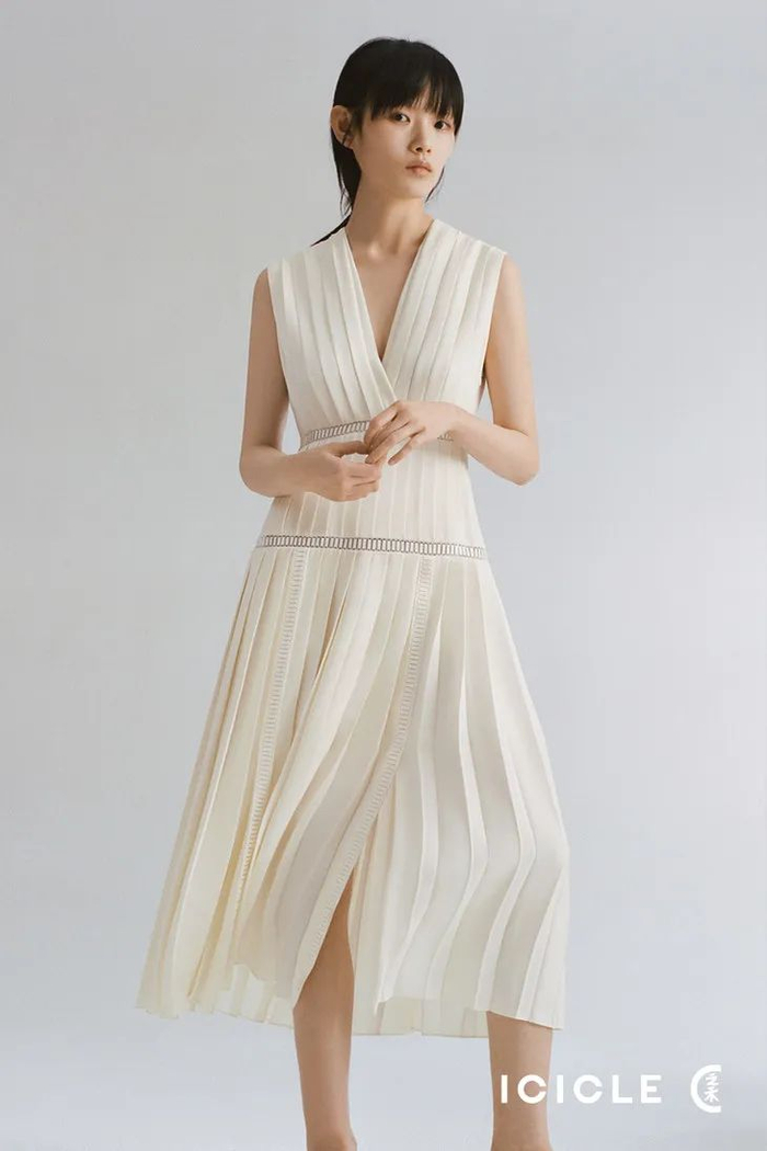 连衣裙来自基于“天人合一”古老东方哲学而创造的时装品牌ICICLE之禾,品牌从大自然中精选高品质原料, 展示天然之美。