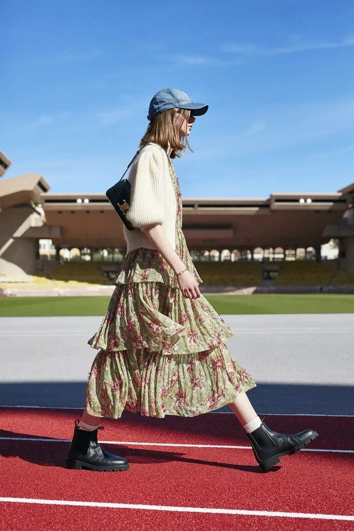 CELINE自打走起了70年代文艺风,百褶裙也成为“囊中之物”。打破传统印象,百褶裙也可以和鸭舌帽、短靴等年轻玩意儿做混搭,出人意料地个性好看。