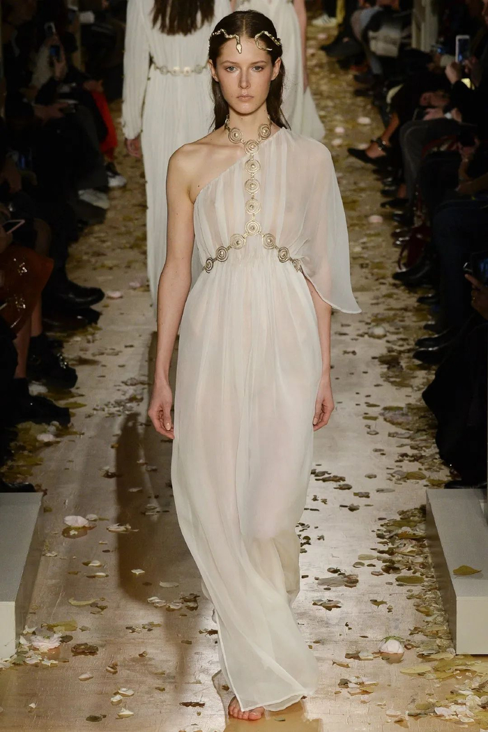 在Valentino 2016春夏系列秀场上,以“致敬古希腊文化”为主题的模特们款款走出,真·此景只应天上有……