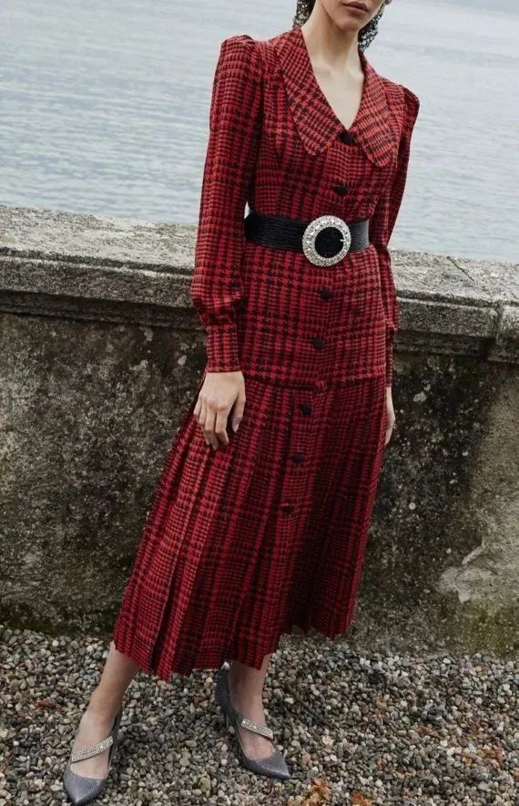 这不,五月中旬,凯特王妃就到访维多利亚和阿尔伯特博物馆(V&A)参观展品。出席活动时,凯特王妃选择了一条宫廷感十足的红色格纹长裙,黑色鞋包顺色呼应格子图案,端庄时髦。