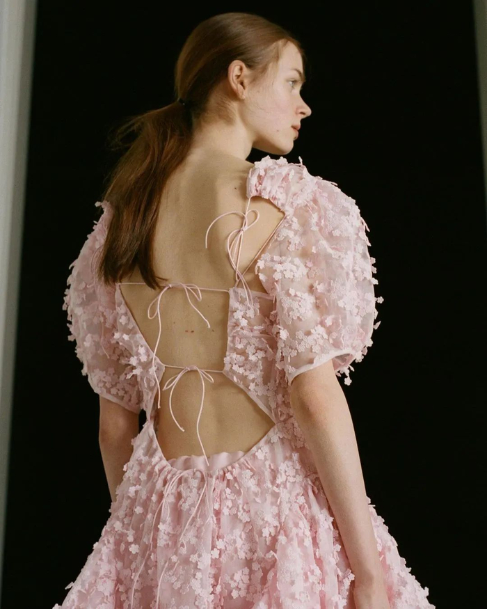 提到蝴蝶绑带元素,总能让人联想到带有梦幻色彩的童话故事。Cecilie Bahnsen这个来自哥本哈根的品牌倏然浮上脑海,充满北欧的极简清冷与少女的空灵浪漫。