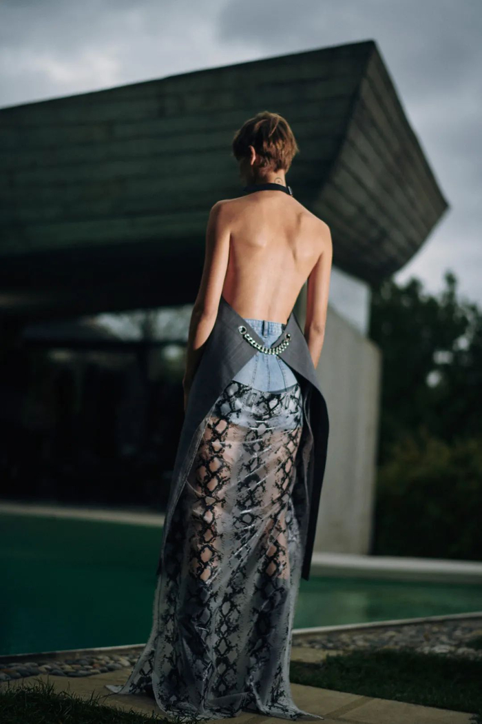 如今的露背元素被卷入现代时尚的漩涡中,已不再拘泥于在重要场合或者活动穿着,它被更多得用于日常穿搭,利用背部线条勾画出真实的自我与个性。
