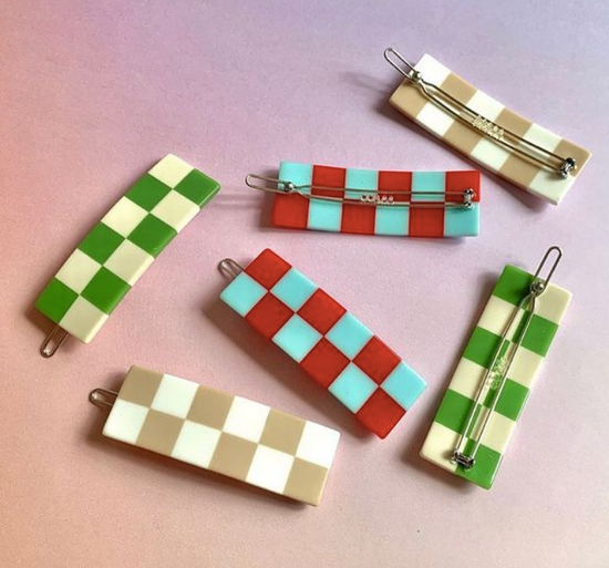 怕自己驾驭不了棋盘格的姐妹们,先从配饰搞起。鲨鱼夹今年有多火不用COCO多说,棋盘格元素的加入能让这两样小东西时髦感立刻upup。
