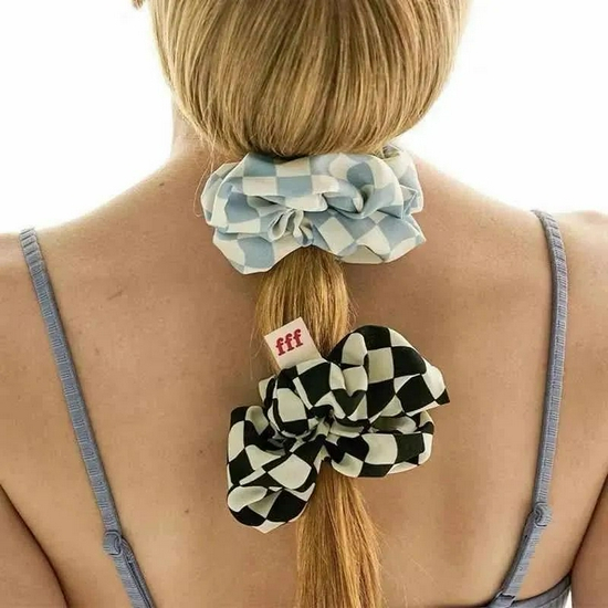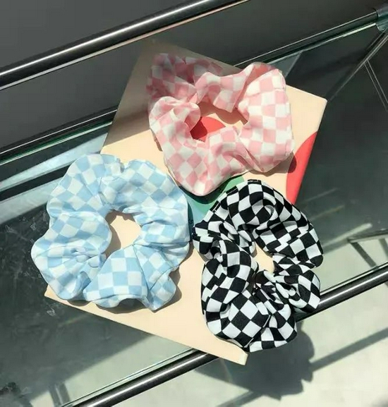 喜欢扎头发的朋友可以看看带有棋盘格设计的“大肠”发圈,粉、蓝、黑三种配色都挺火,50多元即可get同款美丽。