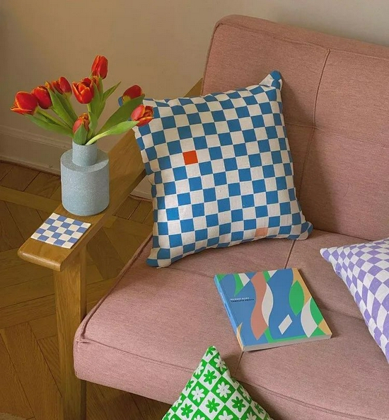 除了时尚单品,家居也被棋盘格狠狠入侵一波,床单、抱枕、甚至蜡烛。。。。。。各种颜色的碰撞,是新鲜活力的感觉。