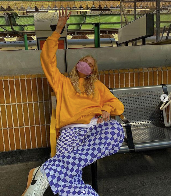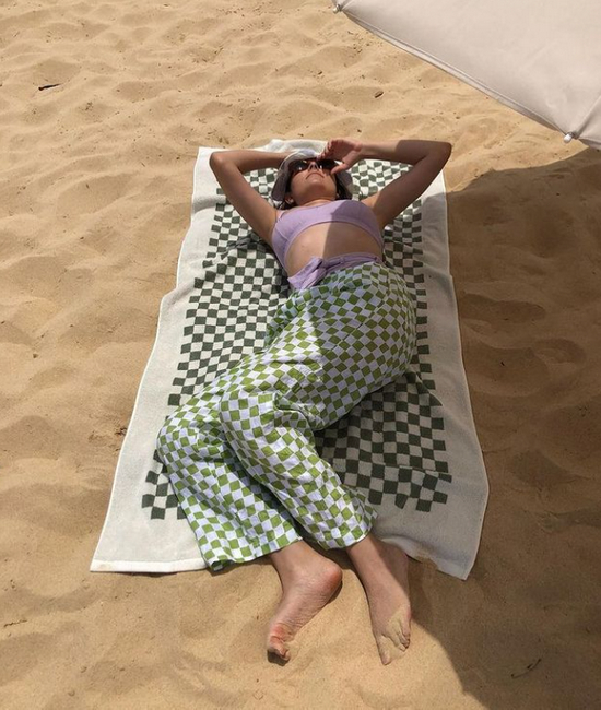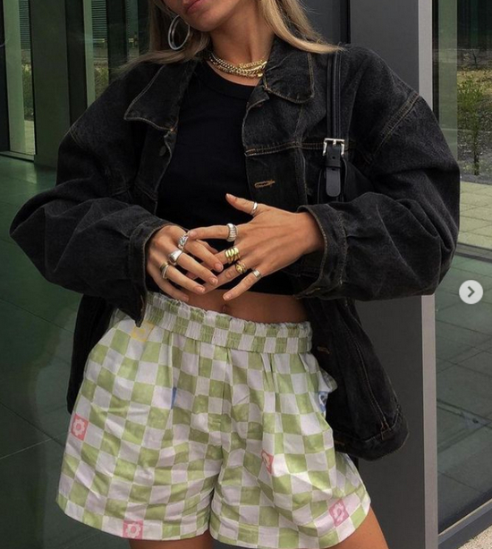 彩色的棋盘格也是下半年的精品,它不像其他格纹色彩样式五花八门、选不好就容易踩雷。棋盘格是由简简单单的两色组成,就算是高饱和度对撞的色彩构造,呈现的也是很清晰的效果,一点都不杂乱。