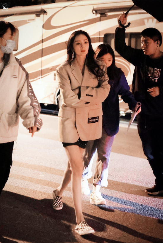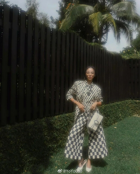 杨幂前几天在三里屯逛街时,身上穿的夹克,衣服内搭的打底,就连手里的手机壳全是棋盘格,妥妥的棋盘格中毒粉无疑了!