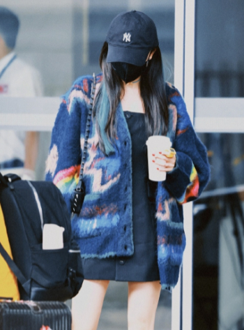 不过OK!还是最爱Jennie这套搭配,挂脖上衣搭配修身针织开衫,有点Y2K辣妹的Feel,真的很可哎~~~