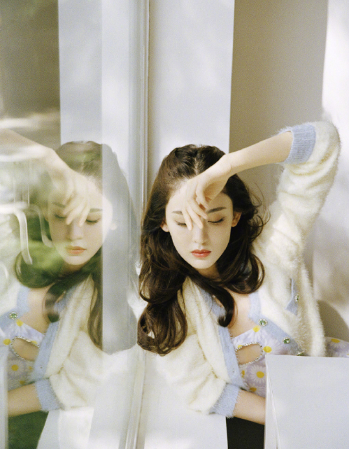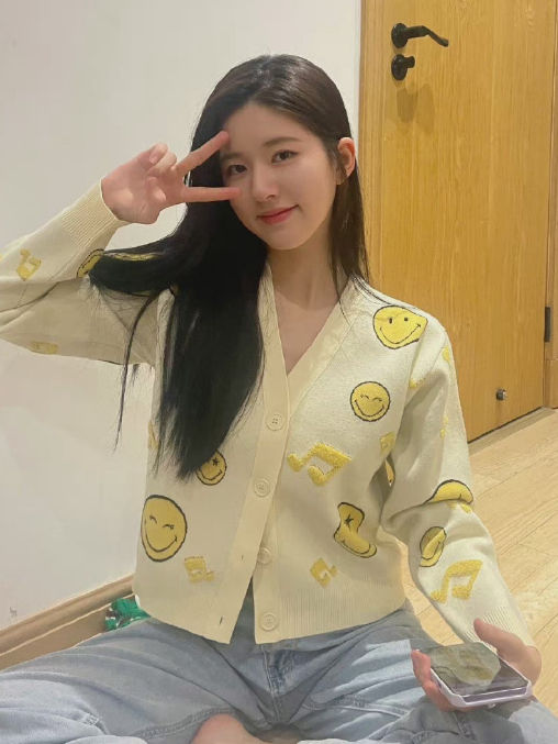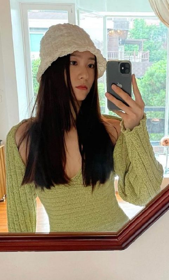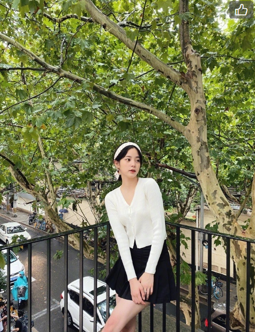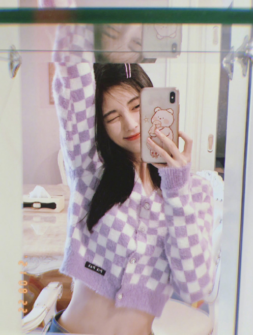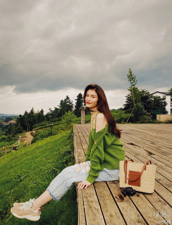 身材不够,比例来凑。郑秀晶私照中就出现了一件超短款的绿色系针织开衫,慵懒的廓形让腰线立现,太让人心动了。