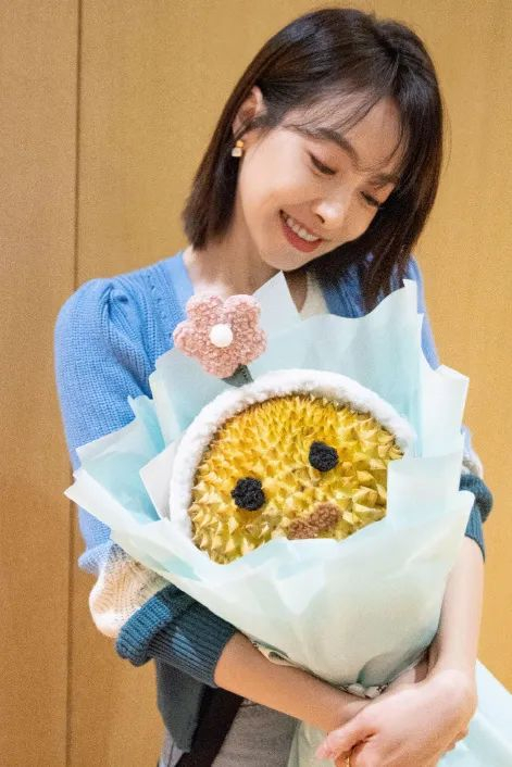 娜扎的小雏菊内搭敲温柔,暖暖的粉蓝色系一下就把氛围感拉满了。