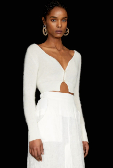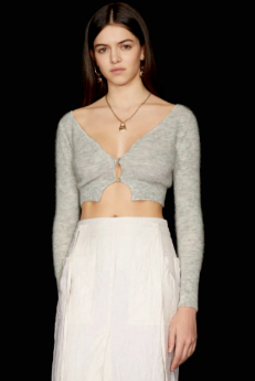 短款针织开衫的风有多大已无需多言,不过最简单的方法还是单独穿着↓