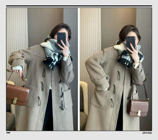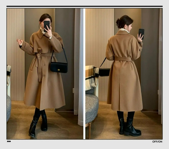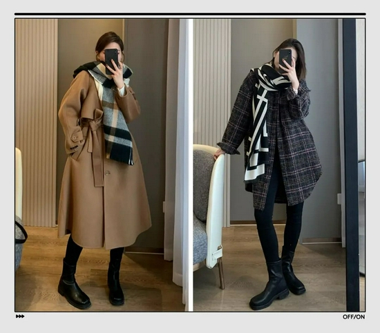 还是感觉羽绒服会显胖的话,那就穿一件中长款大衣,无论保暖还是显瘦,它都有一定实力。