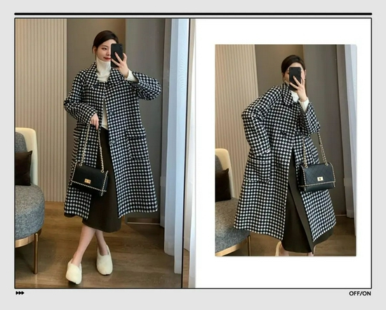 千鸟格的毛衣穿过了,再来一件千鸟格大衣穿吧。干净利落的剪裁,还有恰到好处的长度,能把身材显得更加修长。