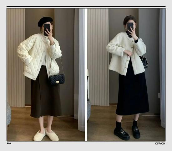 这种小短款的外套,更推荐小个子女生穿,搭配半身裙,能拉长下半身的比例。