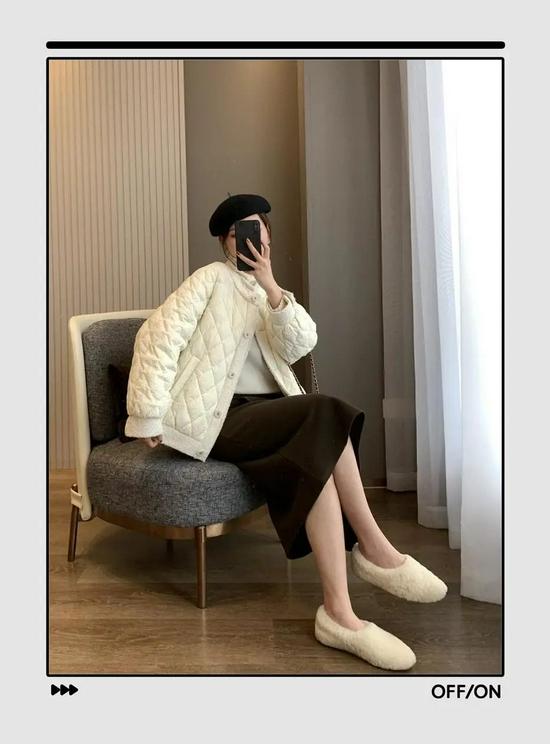 这里有一个小知识点,不想穿羽绒服想胖,就选这种压线羽绒服,看着不厚,但是保暖度一点都不差。