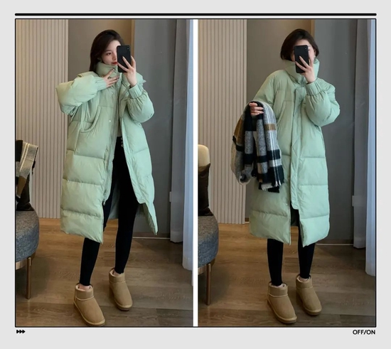 “上松下紧”的穿法有多厉害?看我穿这件中长款的绿色羽绒服就知道了,清爽不显臃肿。