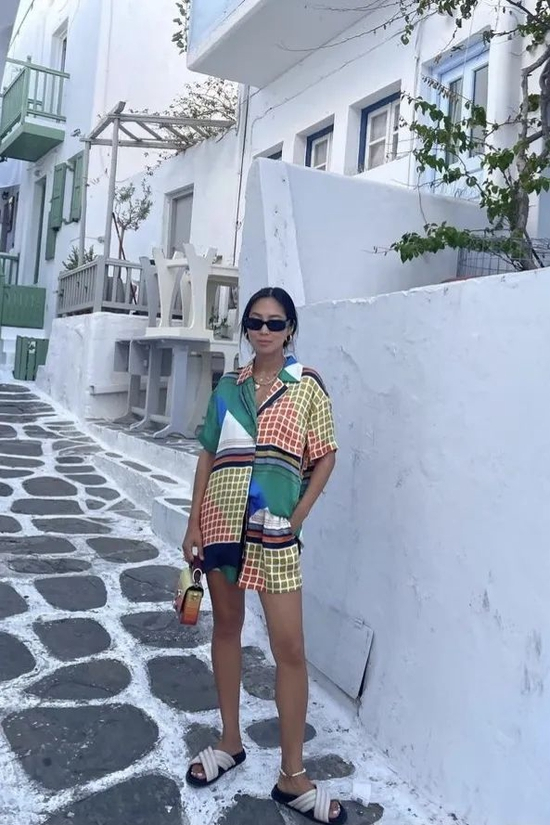 之前她也会穿着慵懒款睡衣风衬衫套装度假,搭配上有趣的配饰就很起范儿。