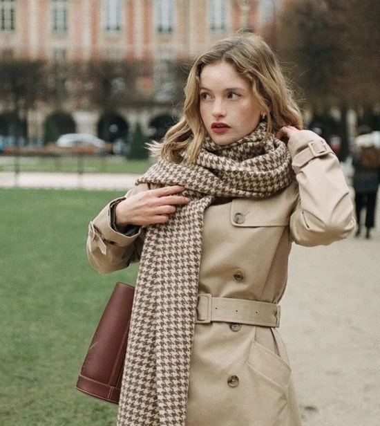 博主的这套同色系也是大地色的“理想型搭配”,风衣+围巾的公式搭配里,加上安全牌的大地色,很像法国电影里的女主角,文艺故事感十足。
