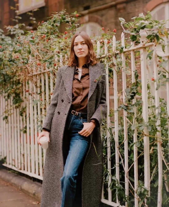 那些奶茶色、焦糖色、燕麦色这一类的大多都可以归进大地色的文件夹里。和秋天常穿的那些针织、毛呢等材质放在一起,舒适感加倍,搭配条牛仔裤就很时髦。