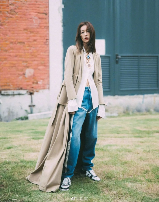 刘雯是个不折不扣的秋日美人,燕麦色风衣搭配白色衬衣,整个人的慵懒劲就有了。搭配大的项链更是丰富有造型感,秋天就是可以玩出各种叠搭花样的季节。