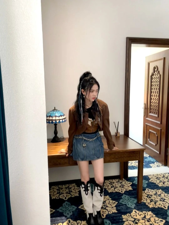 白鹿这样再搭配一双牛仔靴,更是把复古玩出了新花样。几件西部女郎感觉的单品组合在一起,加深了风格态度,氛围感十足。