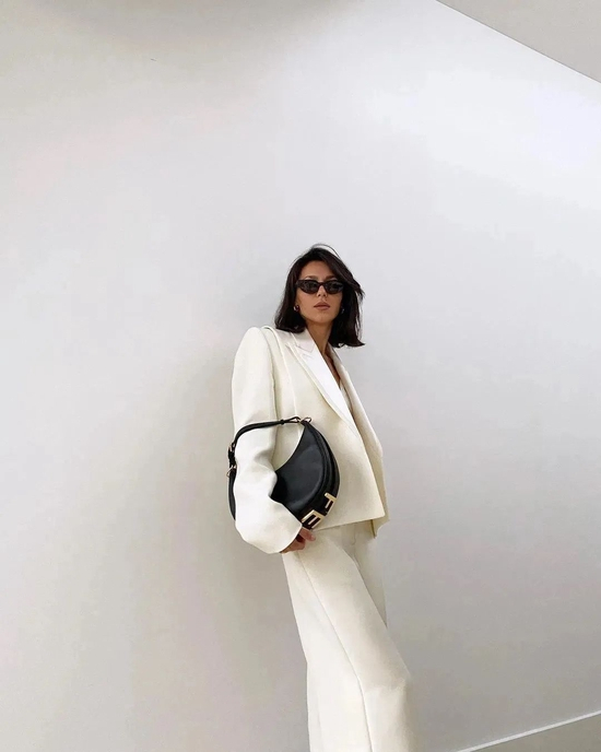 如果担心驾驭不了整身白色,也可以利用包包、帽子或视频来打破大面积白色的张力,会看起来更自在自然点。