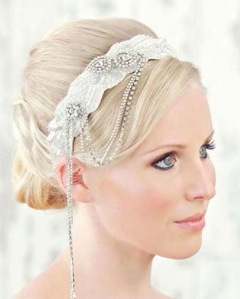闪亮的水钻熠熠生辉这款新娘头饰与上一款有异曲同工之妙,然而二者却各有特色。简单的盘发随意而不简约,既大气优雅又充满了高贵气质。搭配一款时尚的宽边发髻,闪亮的水钻熠熠生辉。发饰的一侧宛如流苏垂下,为新娘的整体造型更添柔情。