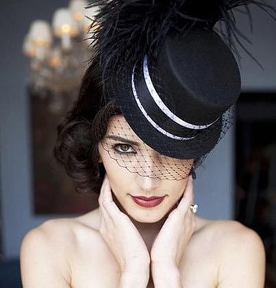 黑色的礼帽黑色的礼帽洋溢着浓浓的贵族气息,简洁的礼帽外面围上一圈镂空设计的面纱,让新娘充满了性感和神秘。而这款礼帽并不是规规矩矩地佩戴在新娘的头上,而是采用倾斜的佩戴方式,在不经意间增加了一丝俏皮感,同时又显得时尚而优雅。新娘若是佩戴这样一款小礼帽,一定能够成为婚礼上最完美的焦点。