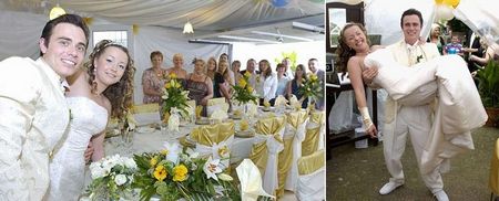 婚礼是人一生中最浪漫的时刻,别出心裁的婚礼更会让人永生难忘。2013年7月27日,来自布里斯托尔的一对新人史蒂文?阿舍(Steven Asher)和艾米丽? 马歇尔(Emily Marshall)在他们经常约会的麦当劳店举行婚礼请宴,与33名家人及好友共度这一喜庆时刻。这个点子是艾米丽的妈妈想出来的,一些朋友曾在社交网站“脸谱网“(Facebook)就此提出质疑,不过艾米丽说结婚就该与众不同。现年28岁的史蒂文和21岁的艾米丽六个月前相识,当时俩人与朋友夜晚外出玩耍,结束时一位朋友拜托史蒂文开车送艾米丽回家,俩人的情缘就此结下。随后,交往开始,由于都是十足的“快餐粉丝”,所以俩人一周要在快餐店约会两次。婚礼当天,一辆豪华轿车载着大家前往目的地。史蒂文回忆说,自己看到新娘的第一眼完全被她的美震住了。婚礼庆典上,他俩都很紧张,时不时情绪激动到全身颤抖。而艾米丽也回忆说,那天太棒了,不少麦当劳客人的目光都集中在自己身上,有的还拍照留念。他们不仅享受了美食,也分享了自己的快乐与幸福。