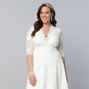 如果你喜欢短款的礼服,但是又想保有传统婚纱的细节,那么这件礼服适合你。上半身的蕾丝面料充满了甜蜜的气息,而下半身镂空花边又是如此迷人。
