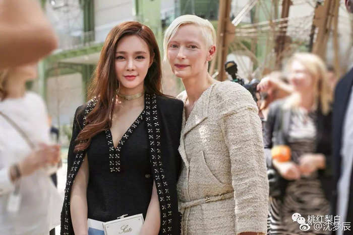 沈梦辰在微博上还po了和蒂尔达斯文顿的合照。