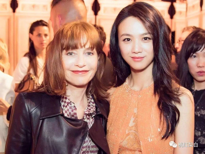 和同样重量级的传奇演员于佩尔合照,也丝毫不违和,气质keep的很不错。