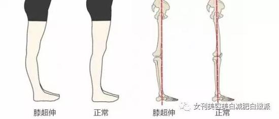 不良体态:错误的站姿,骨盆前倾导致重心迁移,由于人体自重长期压迫导致膝超伸