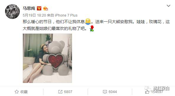 “520”前一天,还在微博里秀收到的大熊和玫瑰花。