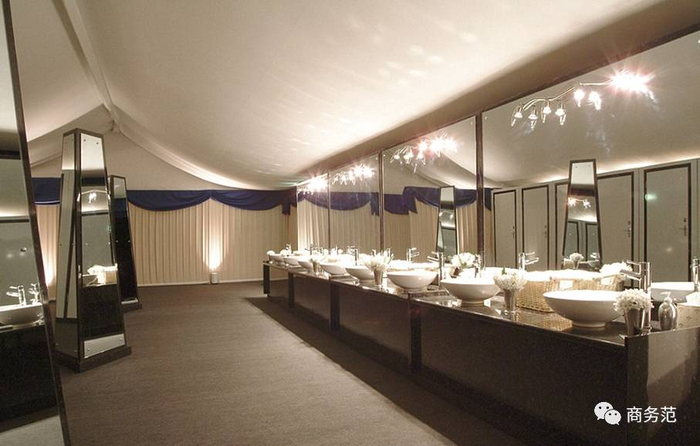 想要户外婚礼趴体做得好,就要配套提上去。pippa还专门搭建了豪华卫生间,内设镜子,精致的洗手台,还安装了豪华便携真空冲洗环保马桶。