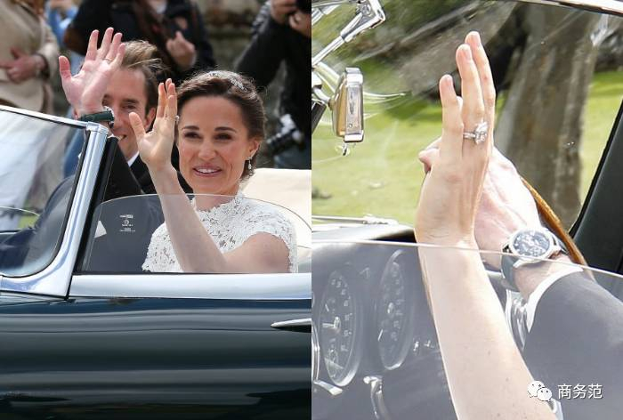 这枚戒指范主之前也讲过,是pippa的订婚戒指,出自珠宝品牌商N。 J。 Geddes,售价大约20万英镑。
